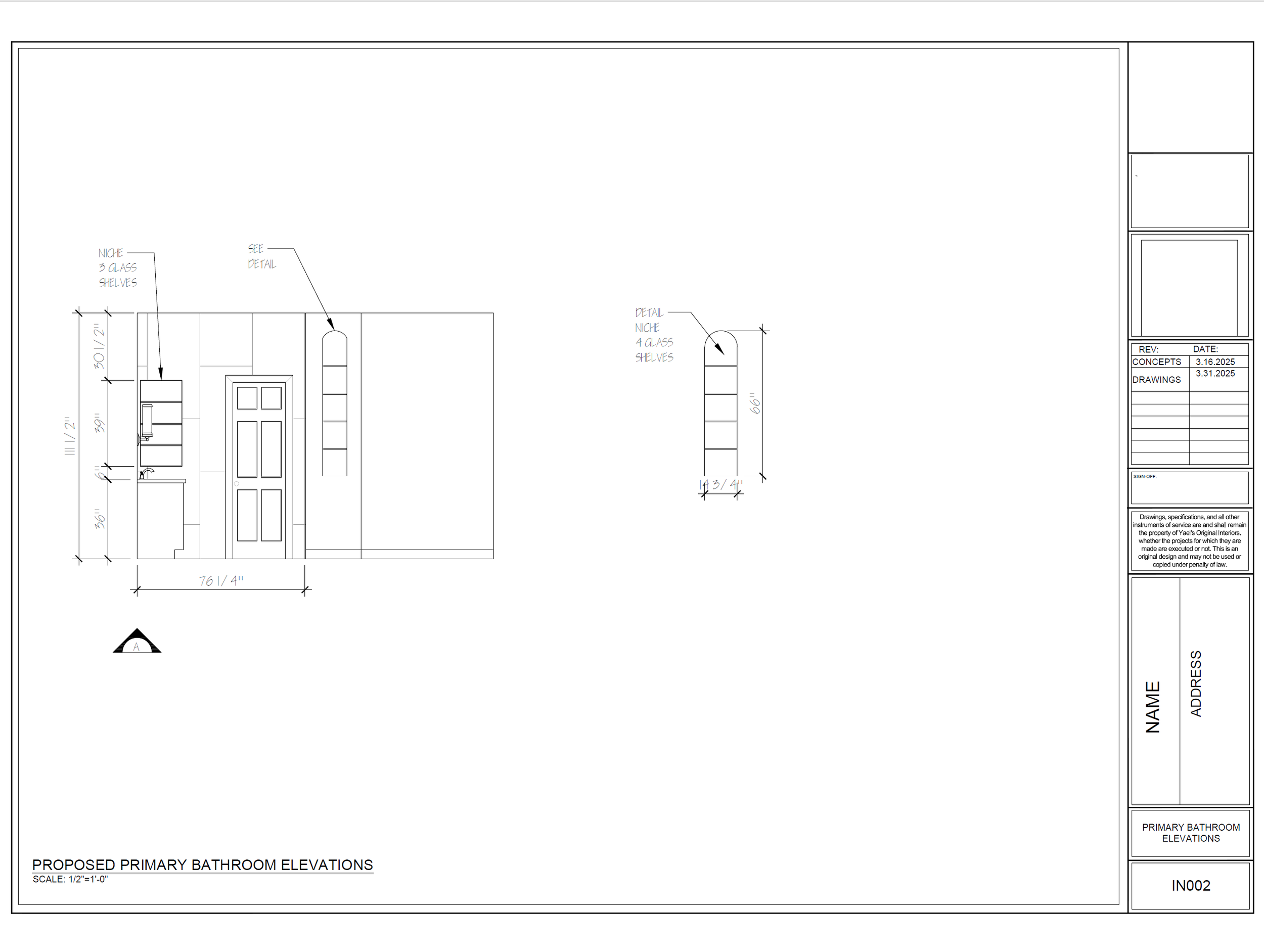 A dated early-2000s bathroom transformed into a timeless, spa-like retreat. I produced the full construction document set and 3D renderings in Revit, guiding the design from concept to completion with precision and clarity.